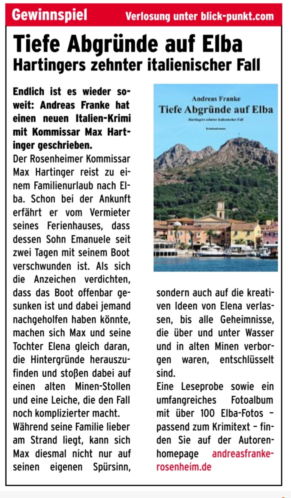 30.08.2025: BLICK-PUNKT ROSENHEIM - Buchverlosung